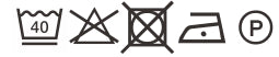 Delicate wash 40℃. Wash with similar colors. Wash inside out. Tumble drying prohibited. Use of bleach and stain removers containing bleach prohibited. Iron at low heat.